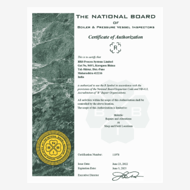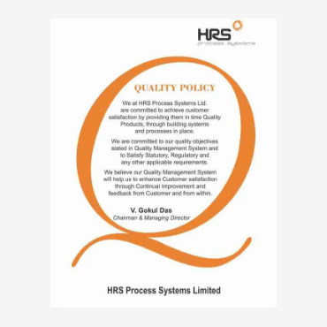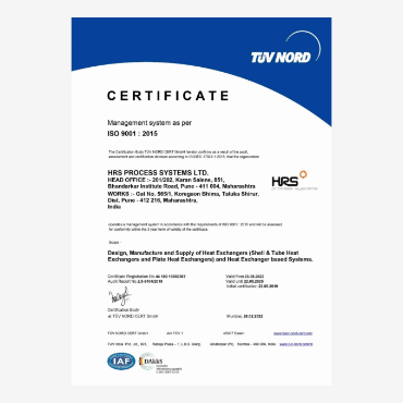 HRS is ISO 9001:2015 certified company and accredited with the coveted ASME ‘U’ & ‘R’ stamp in heat exchanger design and manufacturing which assures our customer high level of product quality and global standards. At HRS, our focus is to provide innovative and cost-effective heat transfer solutions for an extensive range of processing applications across a diverse spectrum of industries.