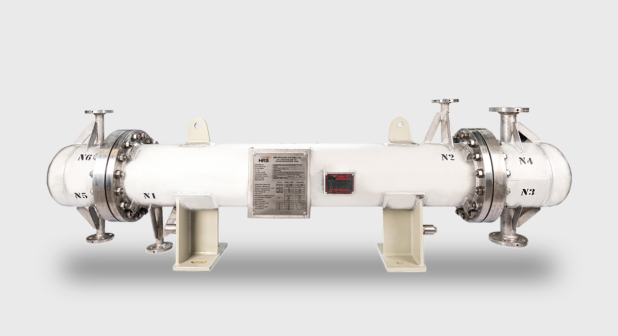 HRS has over four decades of experience in the design and manufacture of ECOFLUX* shell and tube heat exchangers. A wide range of models are developed for process plants across industries. ECOFLUX* range is manufactured in stainless steel and also in other exotic materials. These Shell and tube-type heat exchangers are manufactured for a range of liquid-liquid, exhaust gas and steam applications. They can be installed as primary condensers, reboilers, recuperators, VAM coolers and such applications in pharma, chemical, speciality chemicals, agrochemicals, fertilizers, petrochemicals and many more such sectors.
